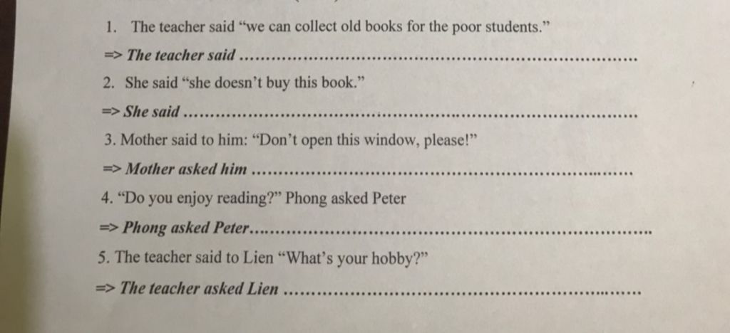 Giải thích : Vì áp dụng công thức câu gián tiếp