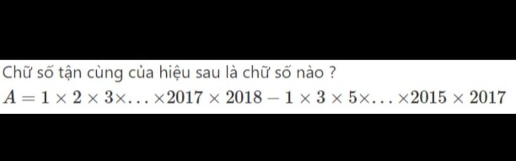 `A = 1 xx 2 xx 3 xx ... xx 2017 xx 2018 - 1 xx 3 xx 5 xx ... xx 2015 xx 2017`