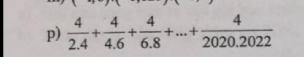 `p) 4/(2.4) + 4/(4.6) + 4/(6/8) + ... + 4/(2020.2022)`