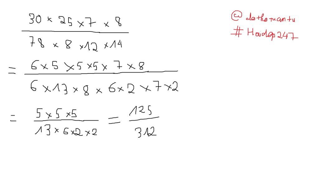 $\dfrac{30*25*7*8}{78*8*12*14}$