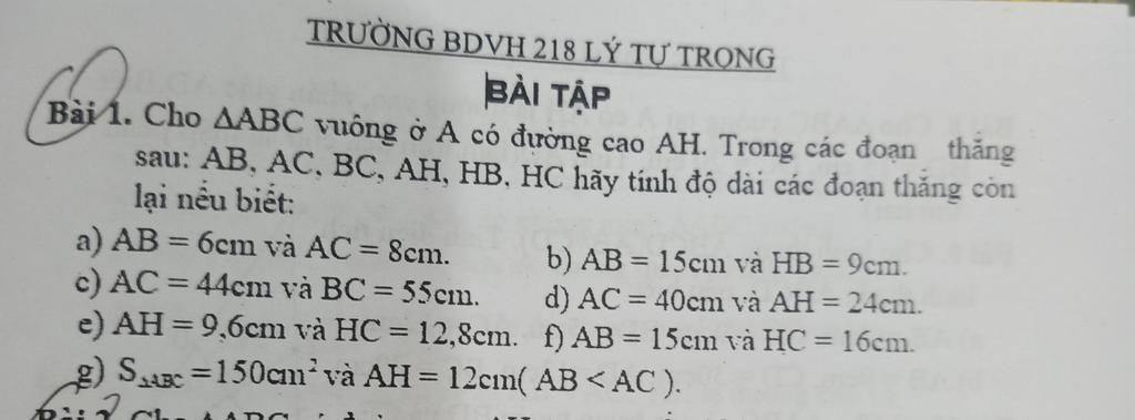 Vậy `HB=9cm; HC=16cm; AB=15cm; AC=20cm`