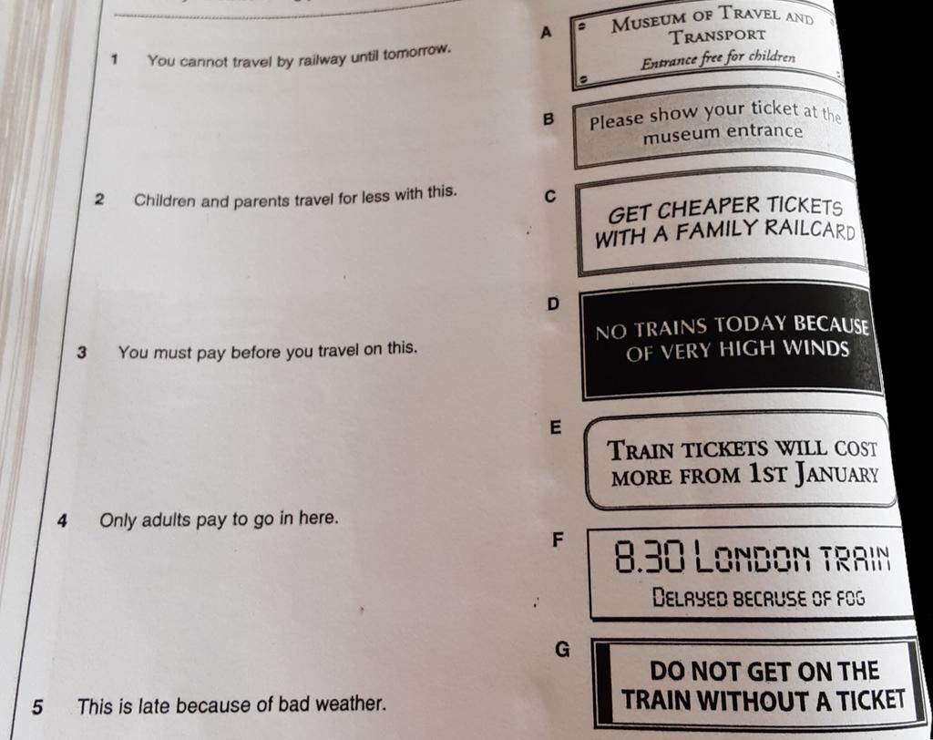 $-$ Theo câu $3$ thì ta phải trả tiền trước khi đi (bằng phương tiện này). ⇒ phải mua vé trước, đồng nghĩa với câu $G$ (không được lên tàu khi không có vé).