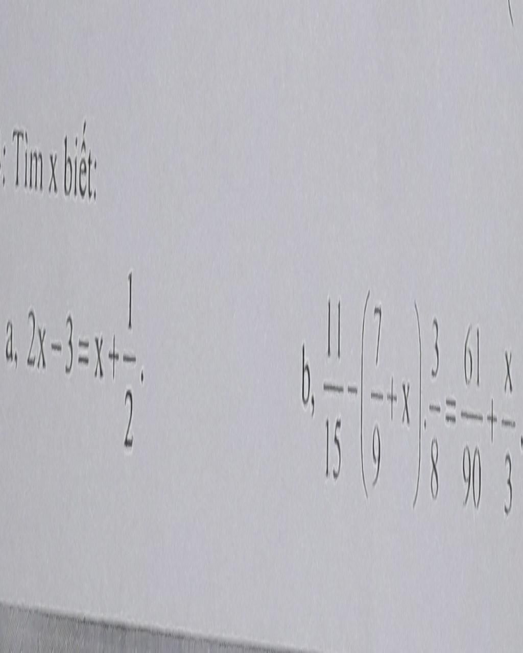 `b) 11/15 - ( 7/9 + x ) . 3/8 = 61/90 + x/3 `