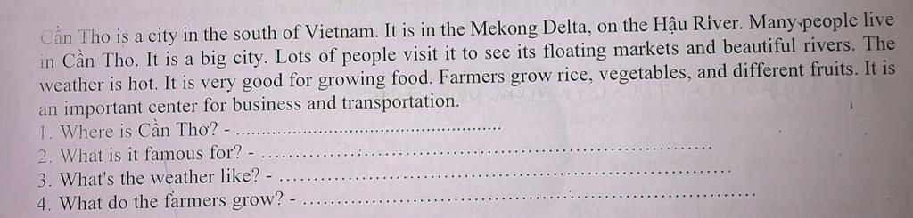 `1.` Cần Thơ is in the Mekong Delta, on the Hậu River.