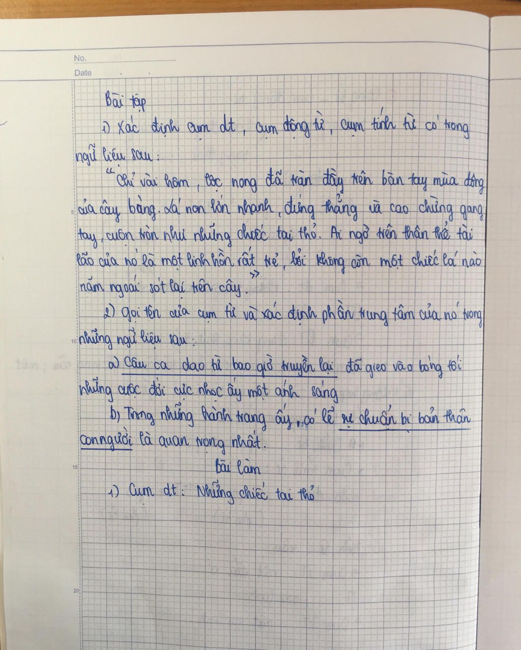 Xác định cụm dt, cụm đt, cụm tt trong ngữ liệu sau: