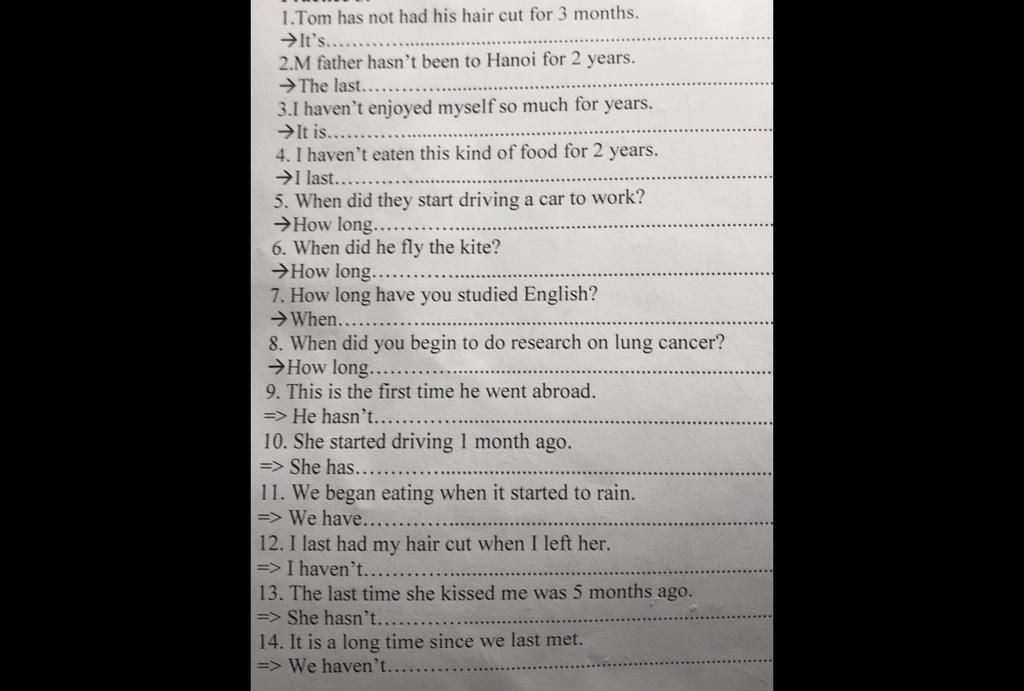 Dịch: Đã 3 tháng kể từ lần cắt tóc cuối cùng của Tom