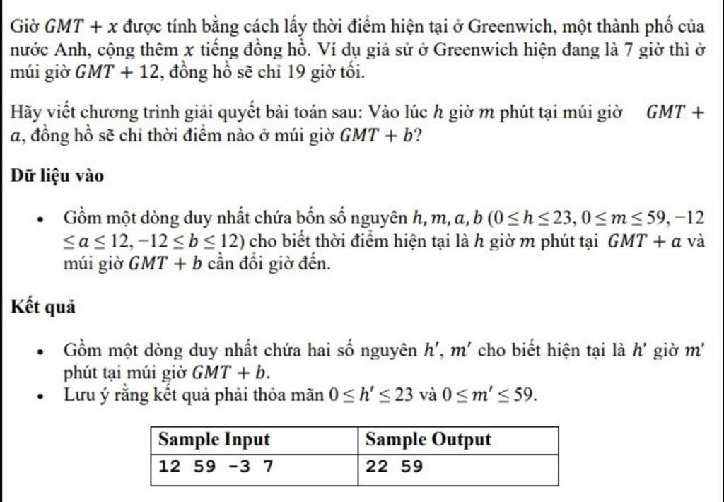 - Nếu múi giờ `a` bé hơn múi giờ `b` thì h += số giờ chênh lệch (bởi vì múi giờ cần đổi lớn hơn múi giờ gốc nên ta cộng)