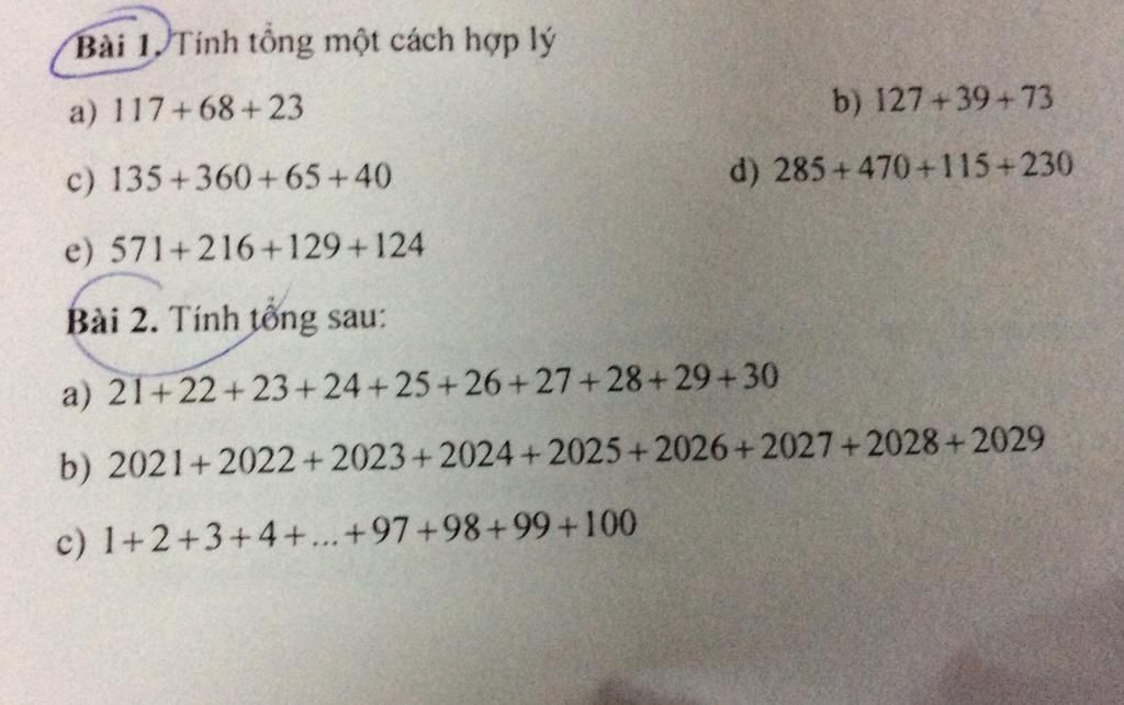 a)`117 + 68 + 23` `= ( 117 + 23 ) + 68` `= 140 + 68 ` `= 208`