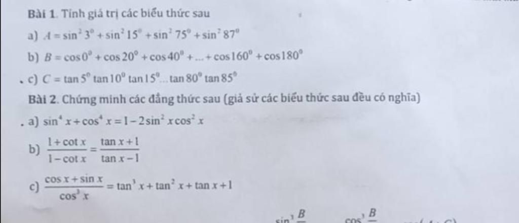 a)Ta có: `A = sin^2 3^\circ + sin^2 15^\circ + sin^2 75^\circ + sin^2 87^\circ`