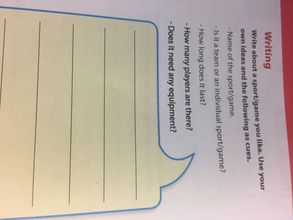 My favourite sport is badminton. It’s an individual sport and a team sport. It may last about 1:30 hours. There are about 2 or 4 players. It needs some equipment: racket, shutlecock, net.