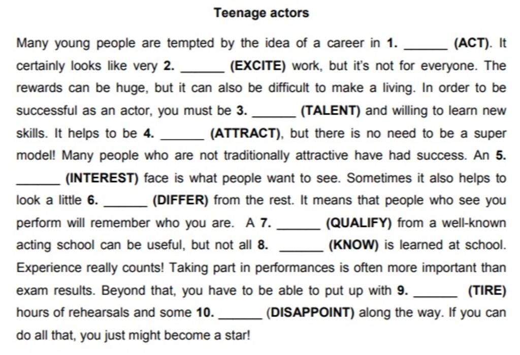 `→`Dạng danh từ của act là action