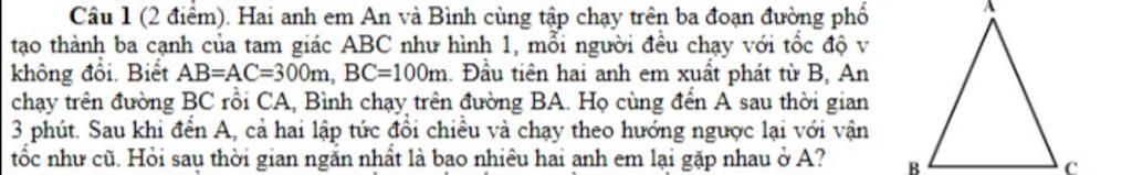 Thời gian ngắn nhất là bao nhiêu hai anh em lại gặp nhau ở `A` là: