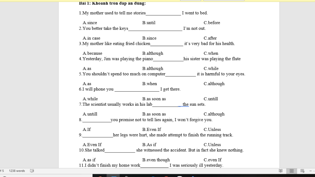 1,C – before (Mẹ thường kể chuyện trước khi tôi đi ngủ)