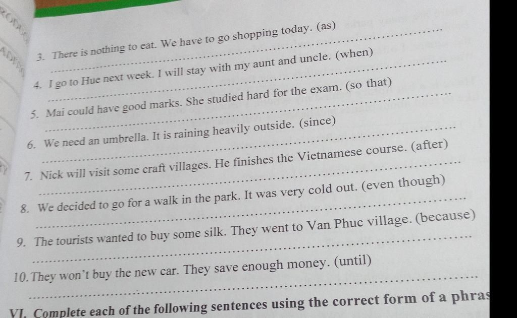 `5.` Mai studied hard for the exam so that she could have good marks.