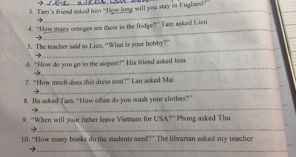 7. Lan asked Mai how much that dress cost.