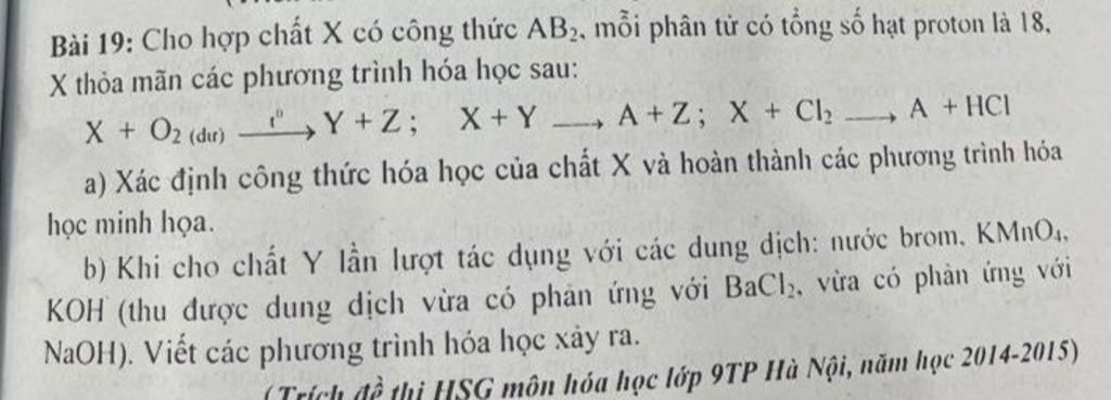 $H_2S + O_2(dư) \xrightarrow{t^o} SO_2+H_2O\\\to Y:SO_2;Z:H_2O\\2H_2S+SO_2 \to 3S+2H_2O\\\to A:S\\H_2S+Cl_2 \to S+2HCl\\b)\\SO_2+2H_2O+Br_2 \to 2HBr+H_2SO_4\\5SO_2+2KMnO_4+2H_2O \to K_2SO_4+2MnSO_4+2H_2SO_4\\SO_2+KOH \to KHSO_3\\SO_2+2KOH \to K_2SO_3+H_2O $
