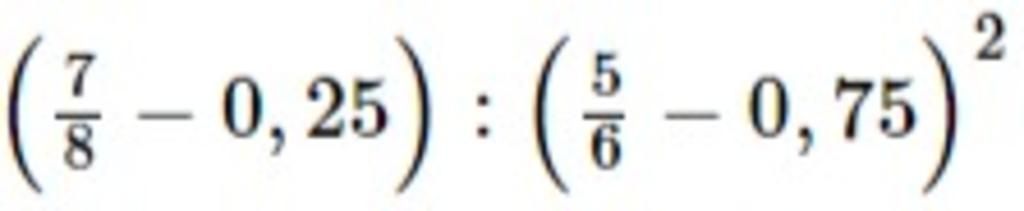 `(7/8 - 0,25) : (5/6 - 0,75)^2`