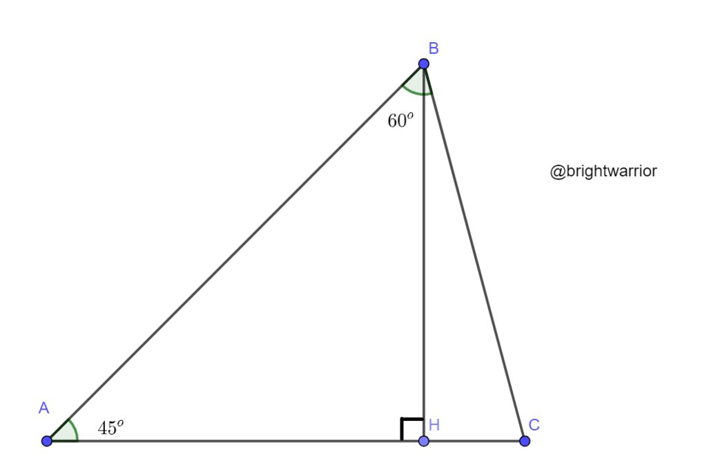 Có $\widehat{C}=180^o-45^o-60^o=75^o$