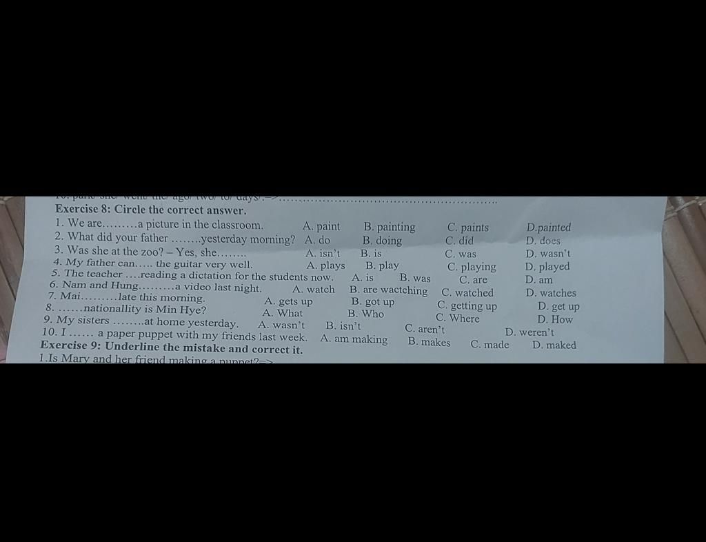 `9.D:` Thì quá khứ đơn - yesterday: `(-)` S + was/ were + not + ........