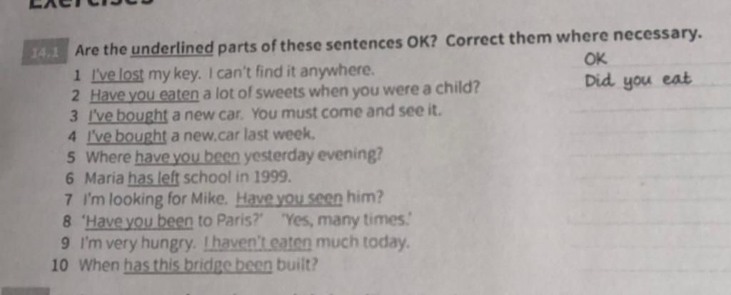 14.1 Are the underlined parts of these sentences OK? Correct them where necessary.