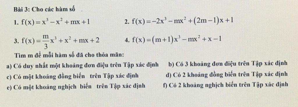 a) Có duy nhất một khoảng đơn điệu trên Tập xác định
