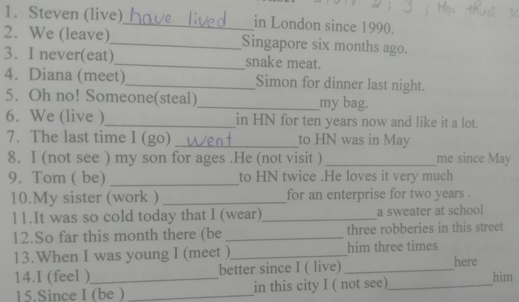 15. have been - haven't seen (since)