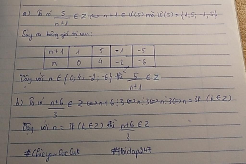 `a,` Để số hữu tỉ `5/{n+1}` nguyên