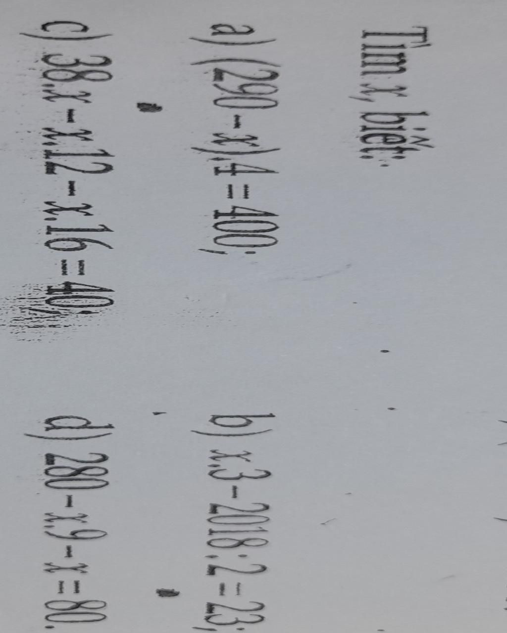 a) (290 - x)4 = 400 b) x3 - 2018 : 2 = 23