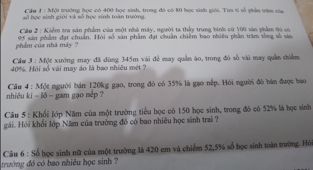 bạn ơi câu 3 là số vải may áo không phải số vải may quần nên phải nhân với 60 % chứ không phải là 40 % nhé