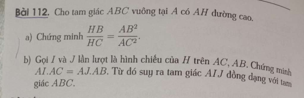 Từ (1)(2) => AB^2 / AC^2 = BC.HB / BC.HC = HB/HC (đpcm)
