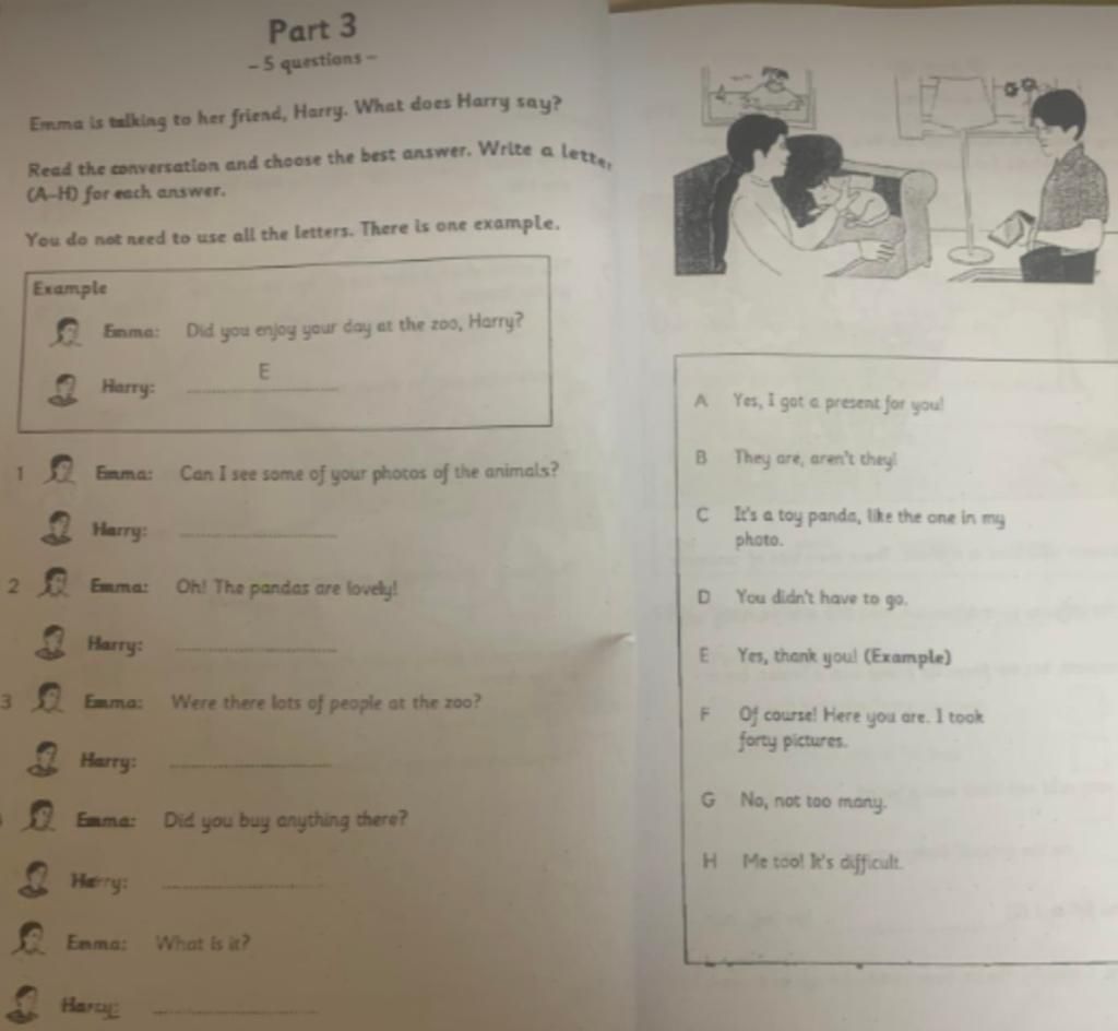 Emma is talking to her friend, Harry. What does Harry say?