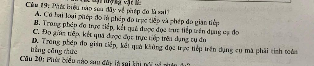 Khi đo gián tiếp, kết quả không đọc trực tiếp trên dụng cụ mà phải tính toán bằng công thức.