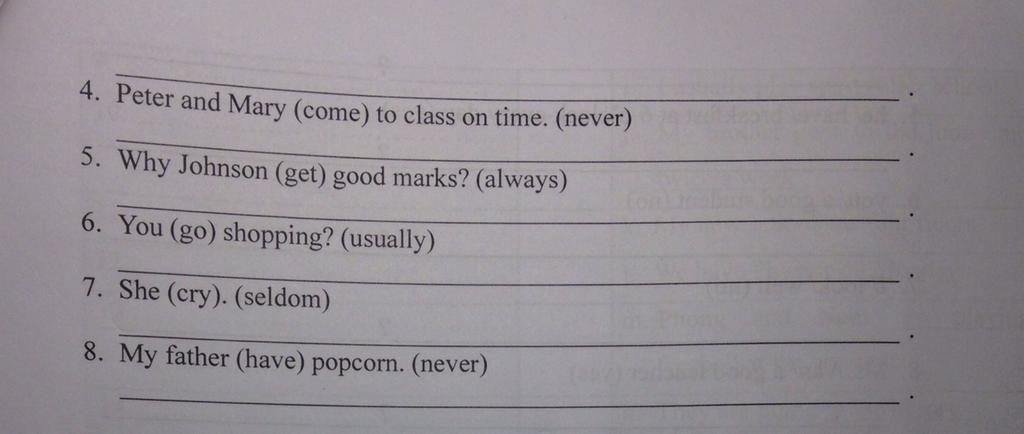 ` 4 . ` Peter and Mary never come to class on time