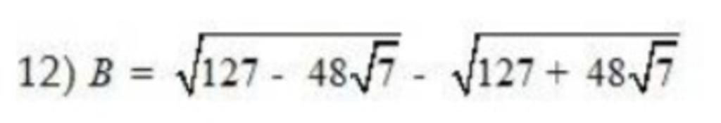 12) $=\sqrt{127-48\sqrt{7}}-\sqrt{127+48\sqrt{7}}$