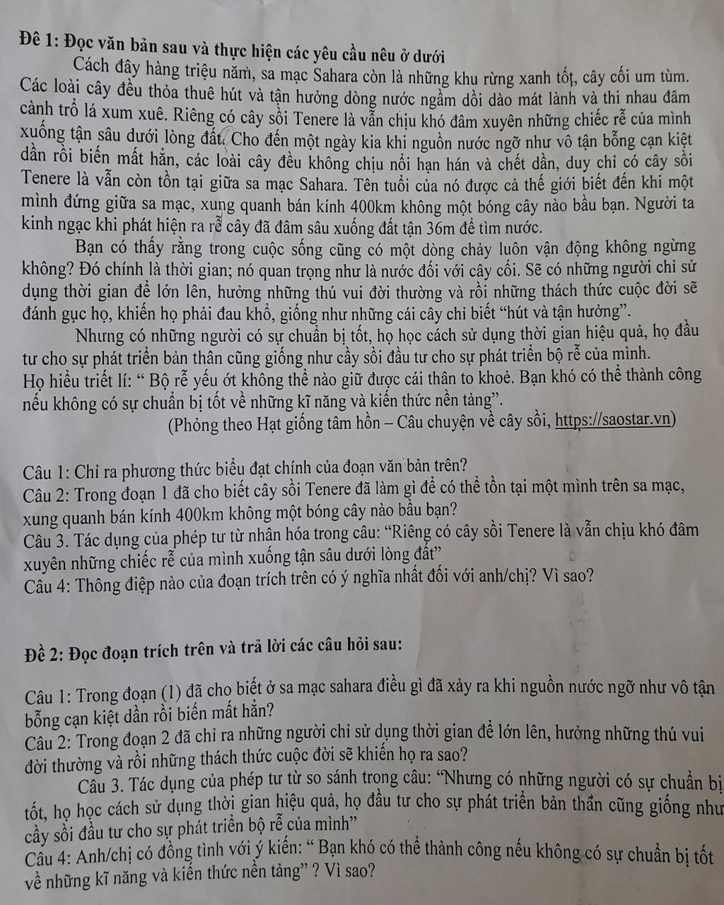 - Trong đoạn (1) đã cho biết điều đã xảy ra ở sa mạc sahara khi nguồn nước ngỡ như vô tận bỗng cạn kiệt dần rồi biến mất hẳn: các loài cây không chịu nổi hạn hán và chết dần, chỉ có cây sồi Tenere là vẫn còn tồn tại