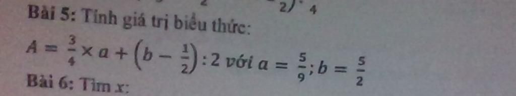 Vậy với `a = 5/ 9` ; `b = 5/ 2` thì giá trị biểu thức `A` là `17/ 12`