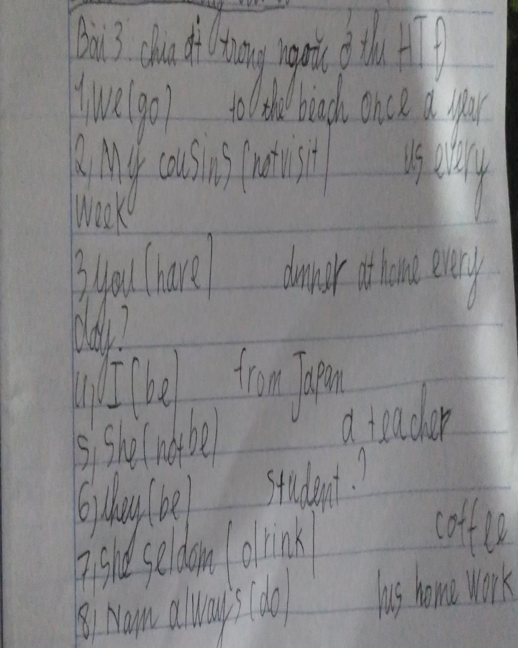 Chia động từ trong ngoặc ở thì hiện tại đơn ( cần gấp ạ)