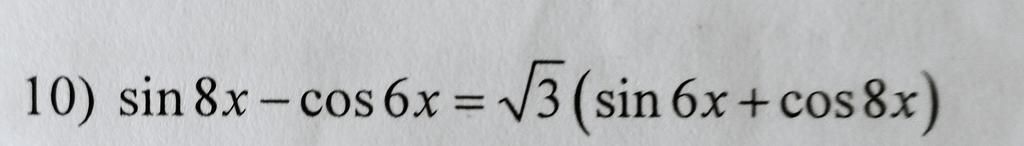 `<=>` `cos``{\pi}/{3}``sin8x-sin``{\pi}/{3}``cos8x=cos``{\pi}/{6}``sin6x+sin``{\pi}/{6}``cos6x`