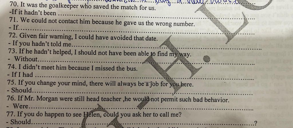 (Sử dụng cấu trúc câu điều kiện loại 3)
