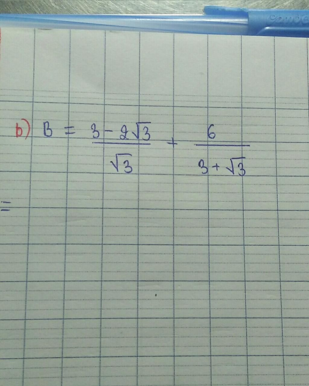 `B= {3-2\sqrt{3}}/{\sqrt{3}} + 6/{3+\sqrt{3}}`