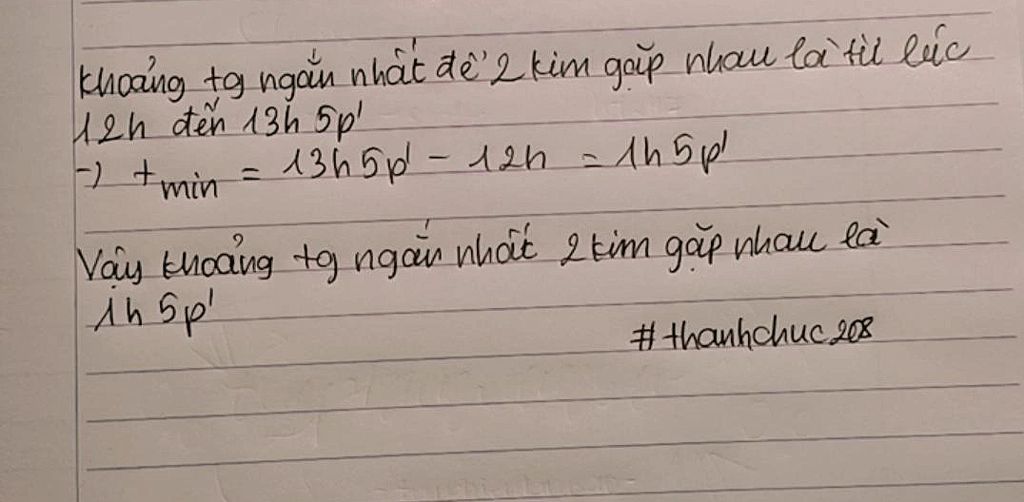 Thời gian để 2 kim đồng hồ chập nhau lần kế tiếp là: