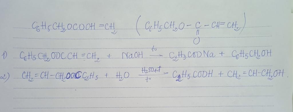 $\rm C_6H_5-CH_2OCOCH=CH_2+NaOH\longrightarrow NaOCOCH=CH_2+C_6H_5-CH_2OH$
