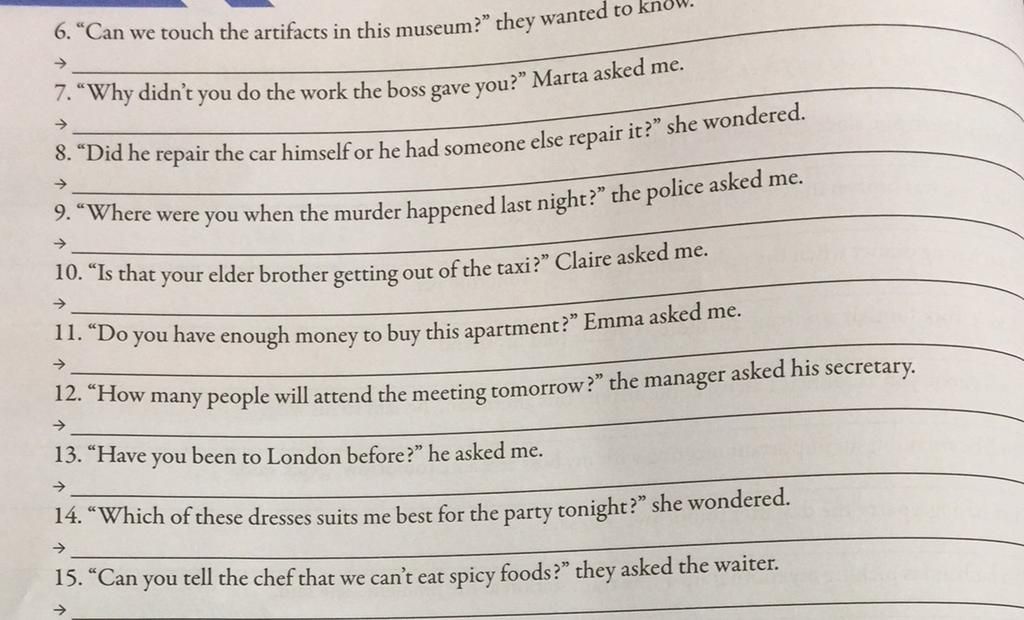 `7.` Marta asked me why I hadn't done the work the boss had given me.