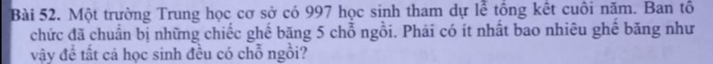 Vậy cần ít nhất `199+1=200` băng ghế như vậy để tất cả học sinh đề có chỗ ngồi.