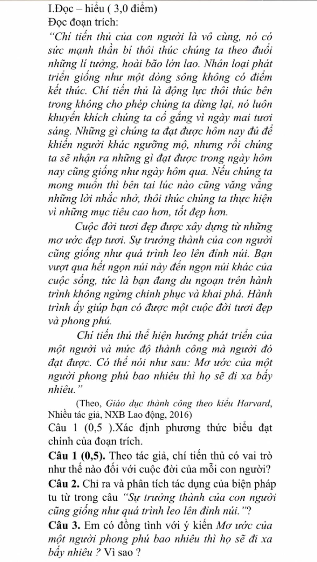 + Chí tiến thủ của con người là vô cùng, nó có sức mạnh thần bí thôi thúc chúng ta theo đuổi những lí tưởng, hoài bão lớn lao.