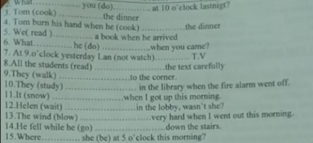 $\text{*Structure: Past Continuous: }$ (thì quá khứ tiếp diễn)