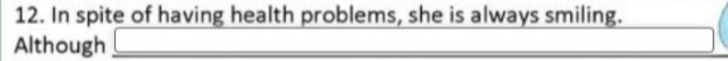 Mặc dù cô ấy có vấn đề về sức khỏe, cô ấy vẫn luôn luôn mỉm cười.