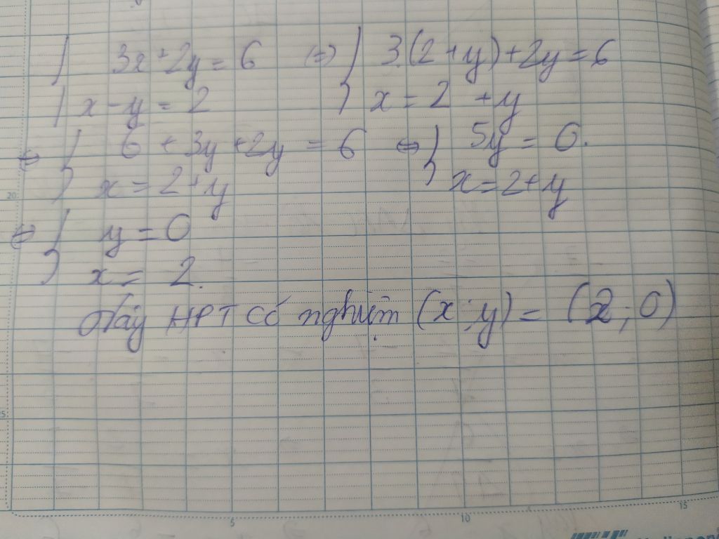 Tớ gọi 3x + 2y = 6 là hệ (1 ) và x - y = 2 là hệ (2) nhé: