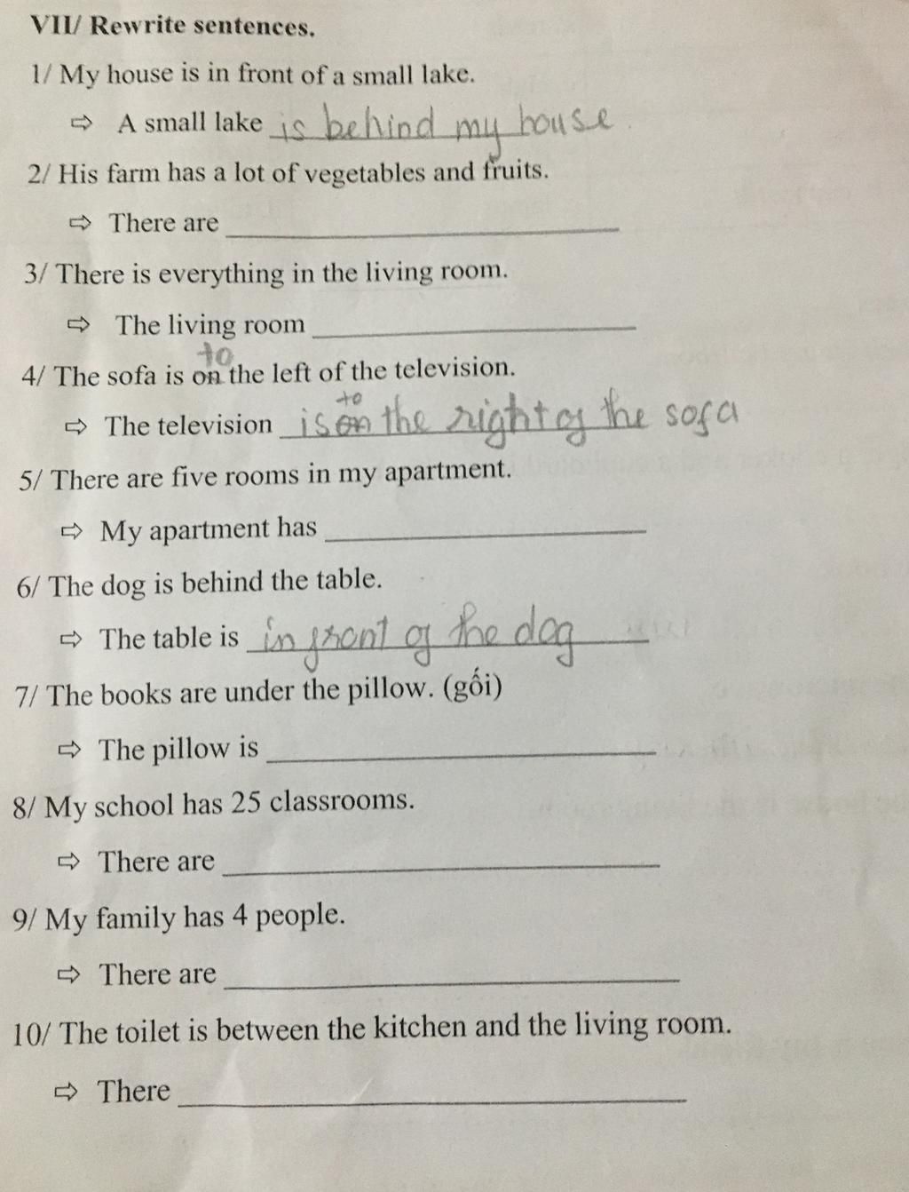 VII/ Rewrite sentences.