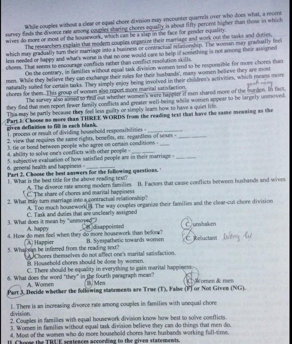 1. chore division (qquastrinhf hay kết quả của việc phân chia công việc nhà được gọi laf chore division)